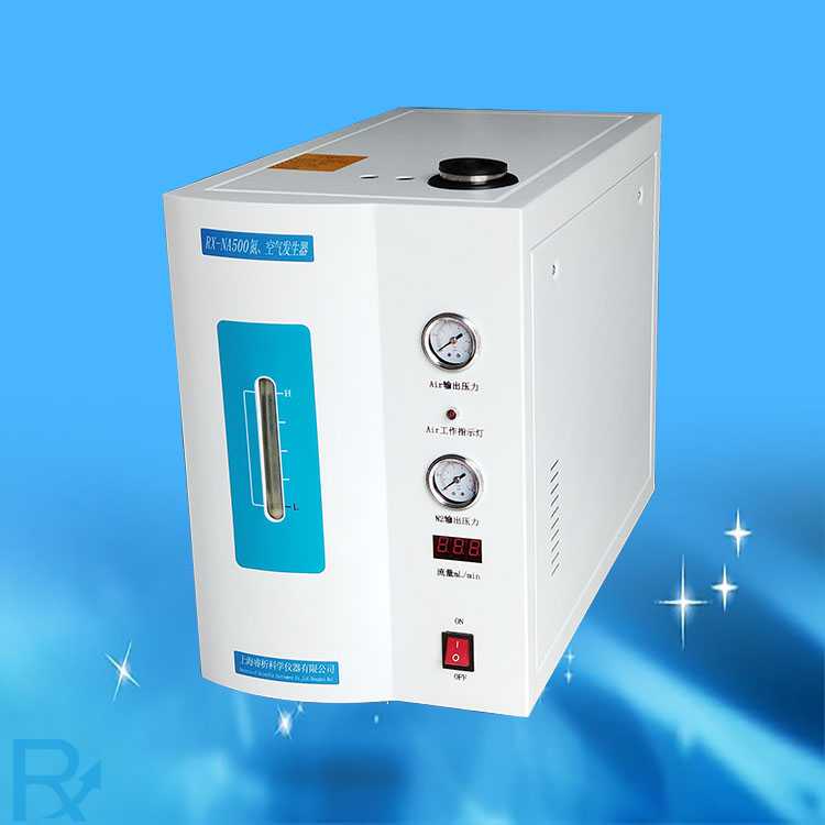 2,膜分離制氮。高壓空氣通過中空纖維膜組件,氮氣分子和氧氣分子的擴散速度差別積累,在膜組件輸出端形成高純度的氮氣,形成的產品氣純度達到高純標準,氣體流量>5000ml/min,并且可以累加使用,不影響產品質量,在不考慮其它限制條件的情況下,氣體裝置可以無限擴充。這種制氮方法膜分離制氮在工業上有不少的應用,在實驗室主要用于對氣體純度要求不特別高的吹掃、保護、對氧氣的置換等。這類發生器的主要優點是流量大,實驗室級別產品一般在50L/min上下,并可隨意擴充,同時壽命長,膜組件作為核心部件,在空氣源穩定的情況下,壽命可達10年,且維護成本低;缺點是氮氣純度不能達到高純級,膜組件目前均為進口,國內不能提供,成本較高,儀器價格也相對高。我公司生產的氮氣發生器中,型號末端帶M的即為膜分離制氮產品,如MNN-5LM可供對氮氣使用量在幾升、幾十升到幾百升每分鐘的用戶選用;膜分離氮氣發生器可以很好的適用液質聯用儀的用氮要求。